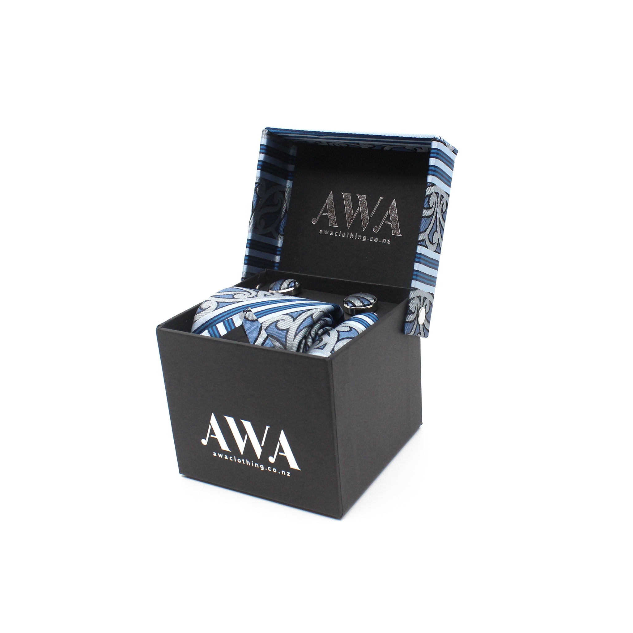 Add an elegant touch to your formalwear with this beautiful boxed tie set from Awa Clothing.