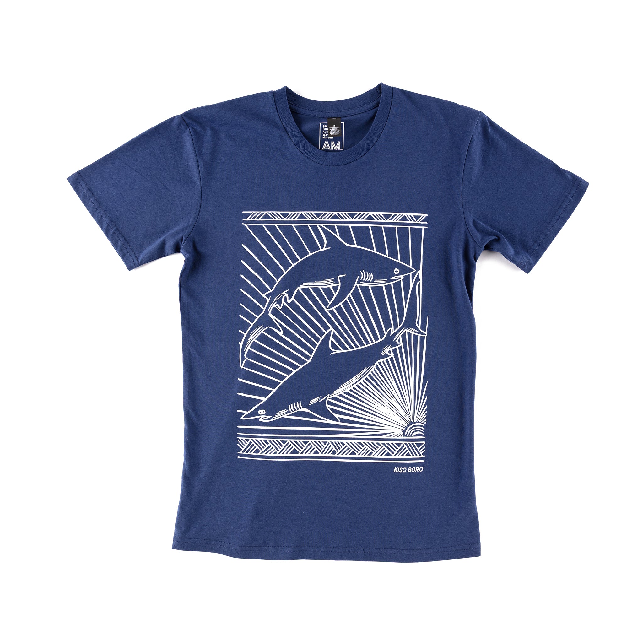 His shark designs are inspired by Vivinei Malivi (oral traditions) that refer to custom stories from the Western Province of the Solomon Islands.