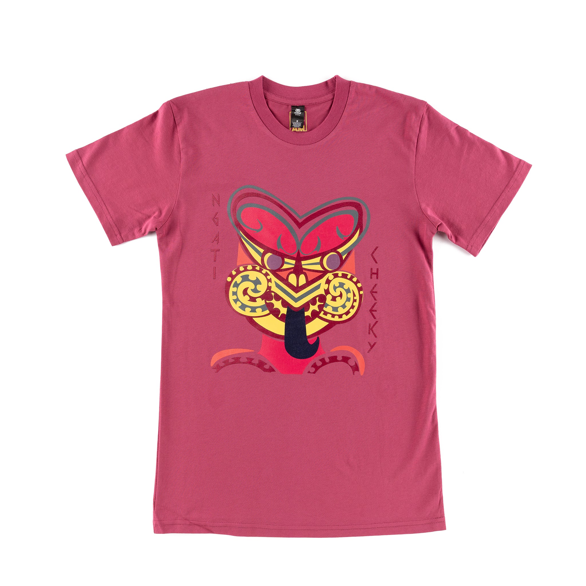 This comfortable combed cotton T shirt features screen printed Ngāti Cheeky Pinky by Jamie Berry - Te Aitanga-a-Mahaki, Rongowhakaata, Ngāti Porou, Ngāpuhi, Ngāti Ruanui.