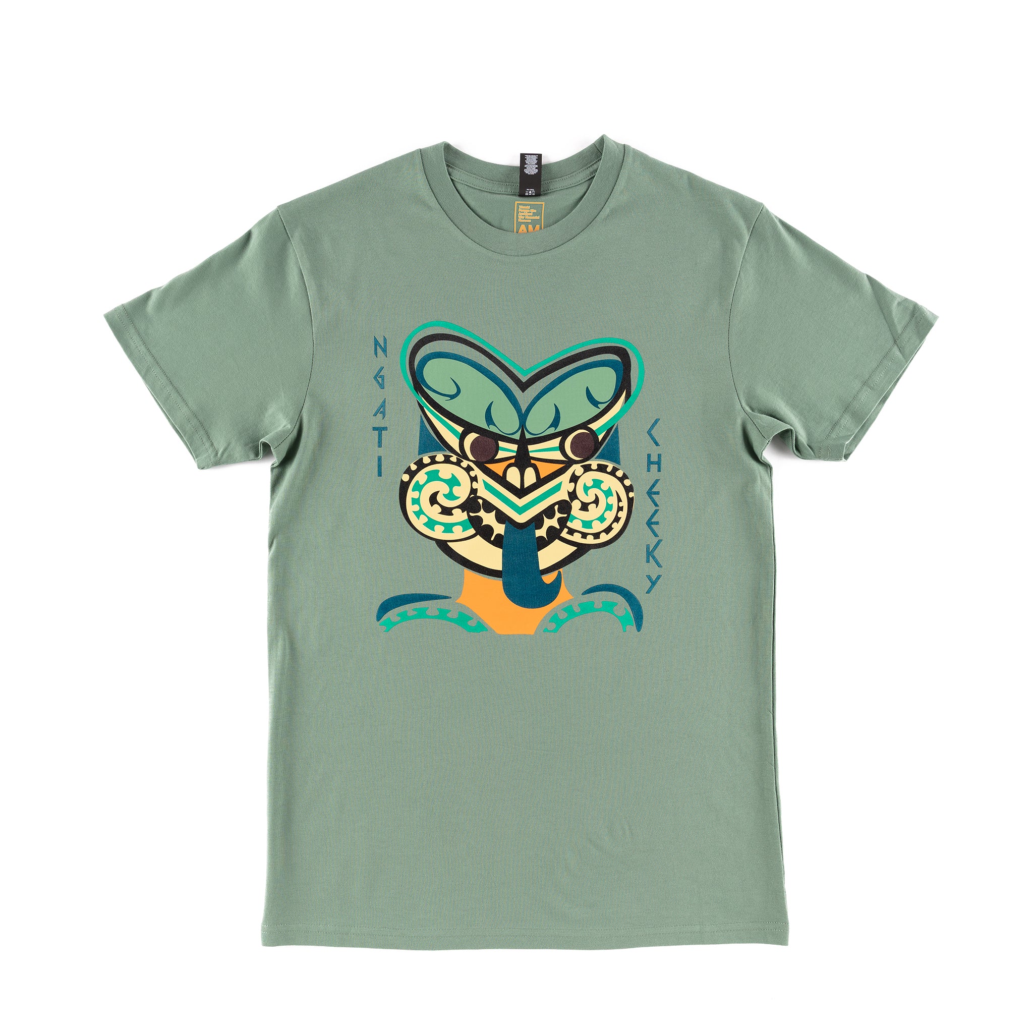 This comfortable combed cotton T shirt features screen printed Ngāti Cheeky Skux by Jamie Berry - Te Aitanga-a-Mahaki, Rongowhakaata, Ngāti Porou, Ngāpuhi, Ngāti Ruanui.