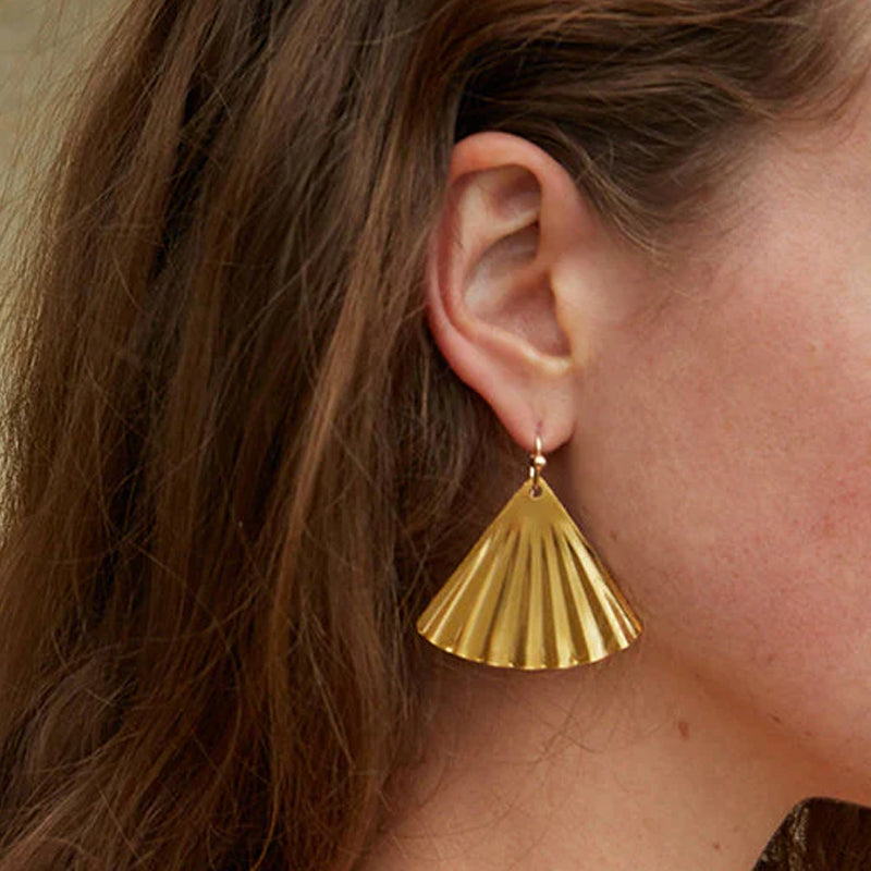 These elegant gold fan earrings are from Charlotte Penman's new collection: Dreamer of dreams, Fan Earrings, that play with light and form.