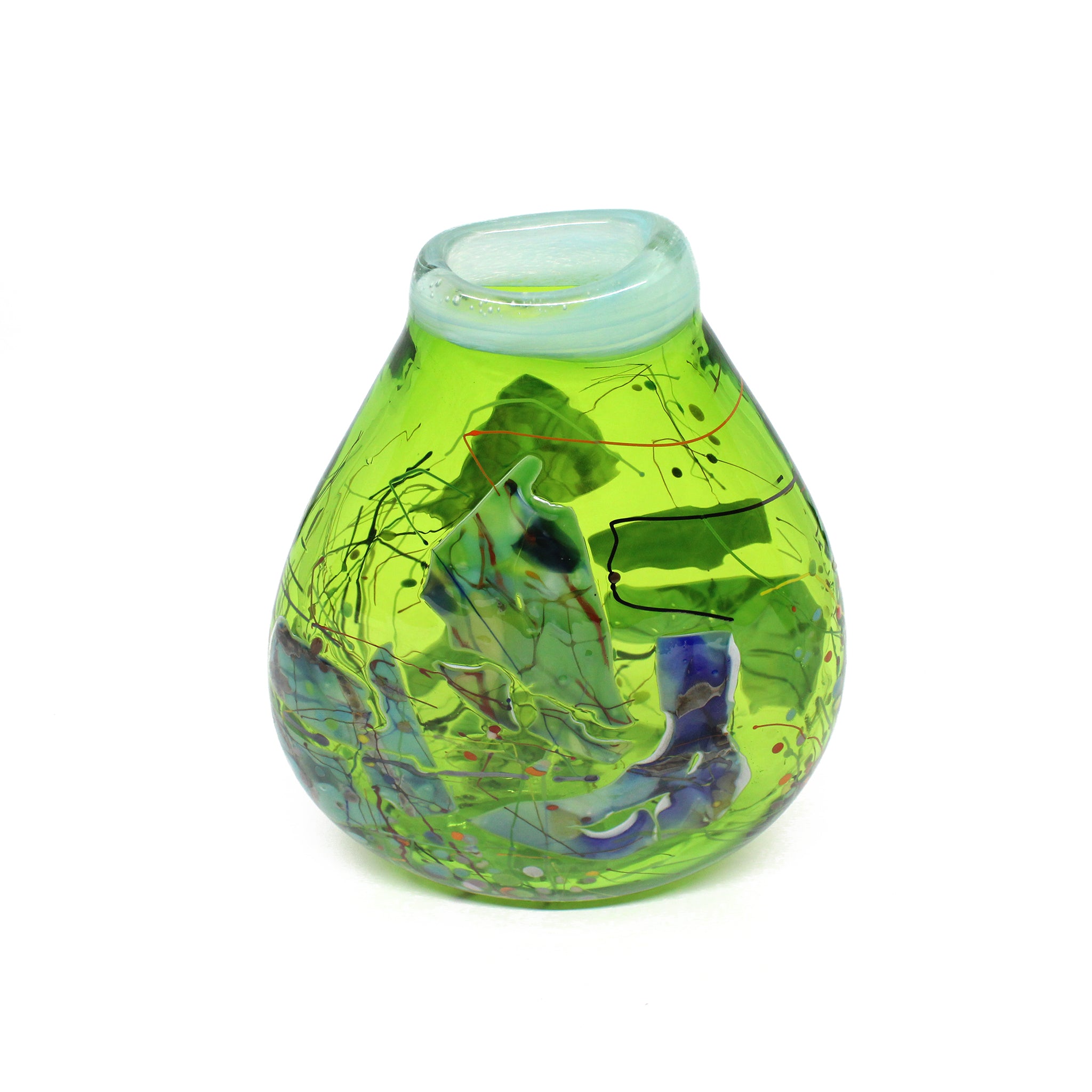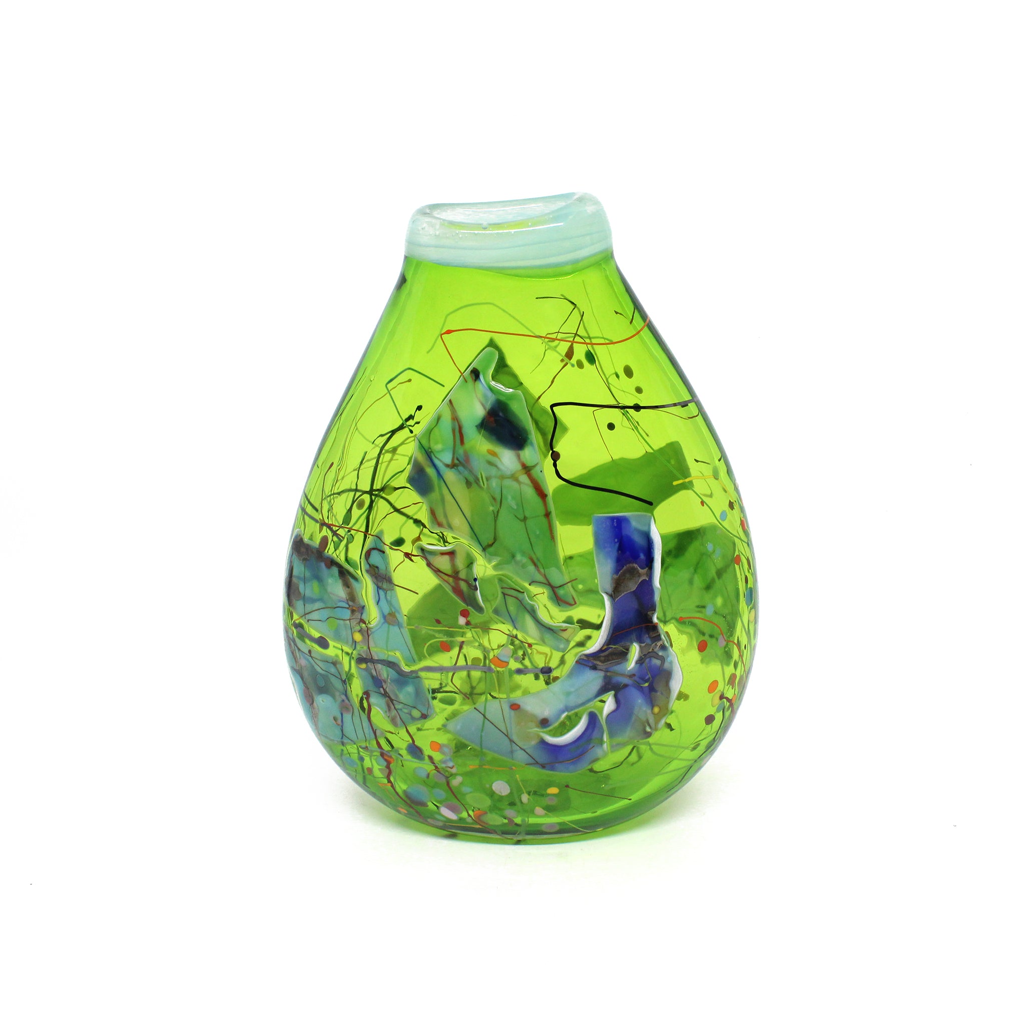 Keith is an award-winning glassblowing artist who works from his studio in Whangarei. Keith is particularly interested in the shard pick-up technique where he rolls molten glass onto shards of glass and wires forming spontaneous patterns, lines and surface design.