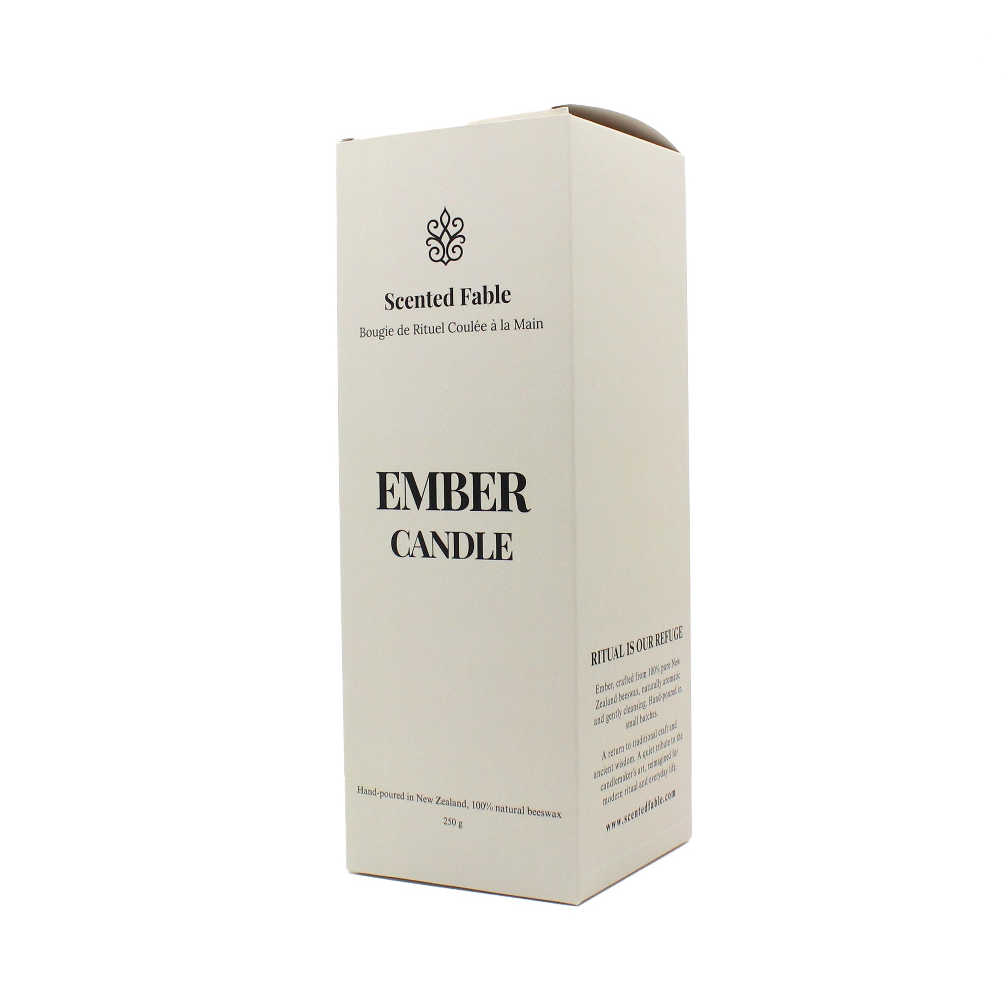 Ember is a candle that celebrates the art of candle making. A nod to the grand homes and candlelit tables of centuries past, when wax was precious, and the air smelled softly of honeyed beeswax.