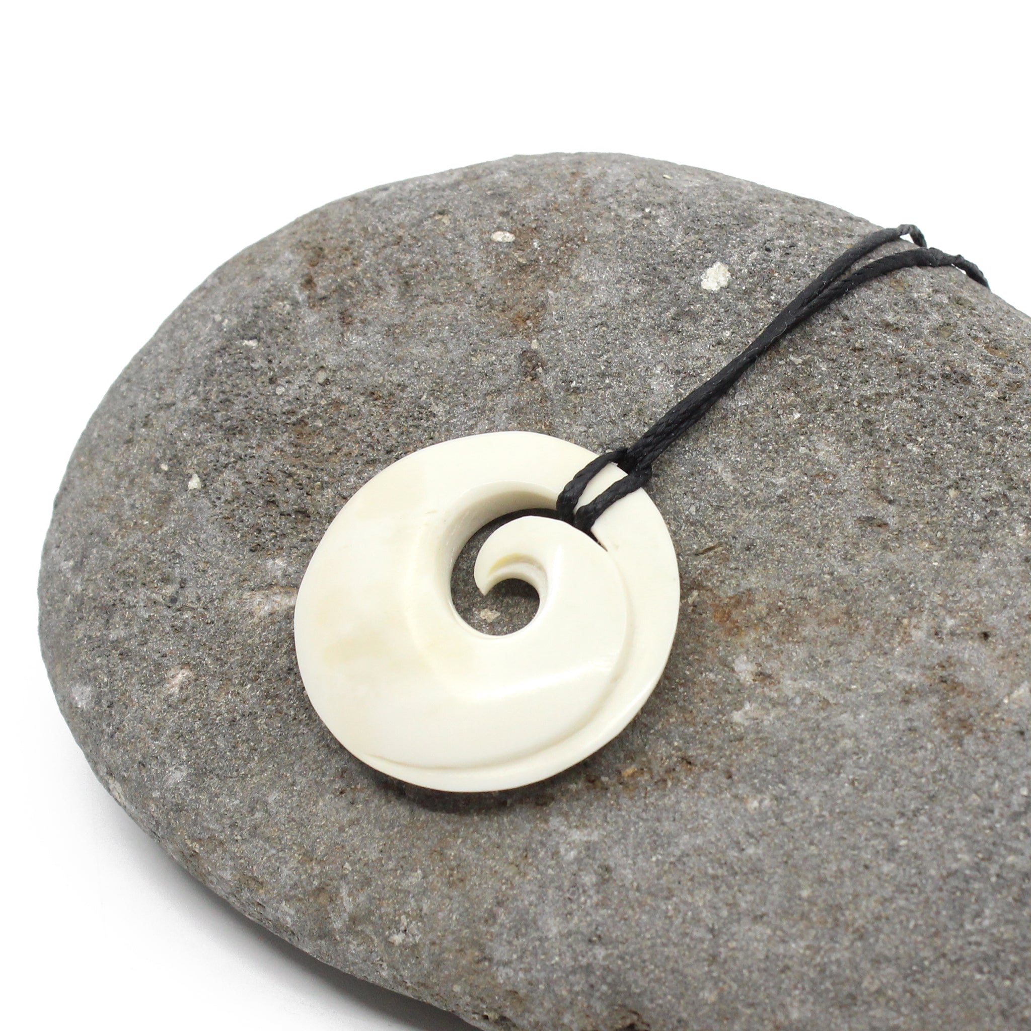 This beautiful Koru Pendant has been carved from beef bone by Peter Mitchell.