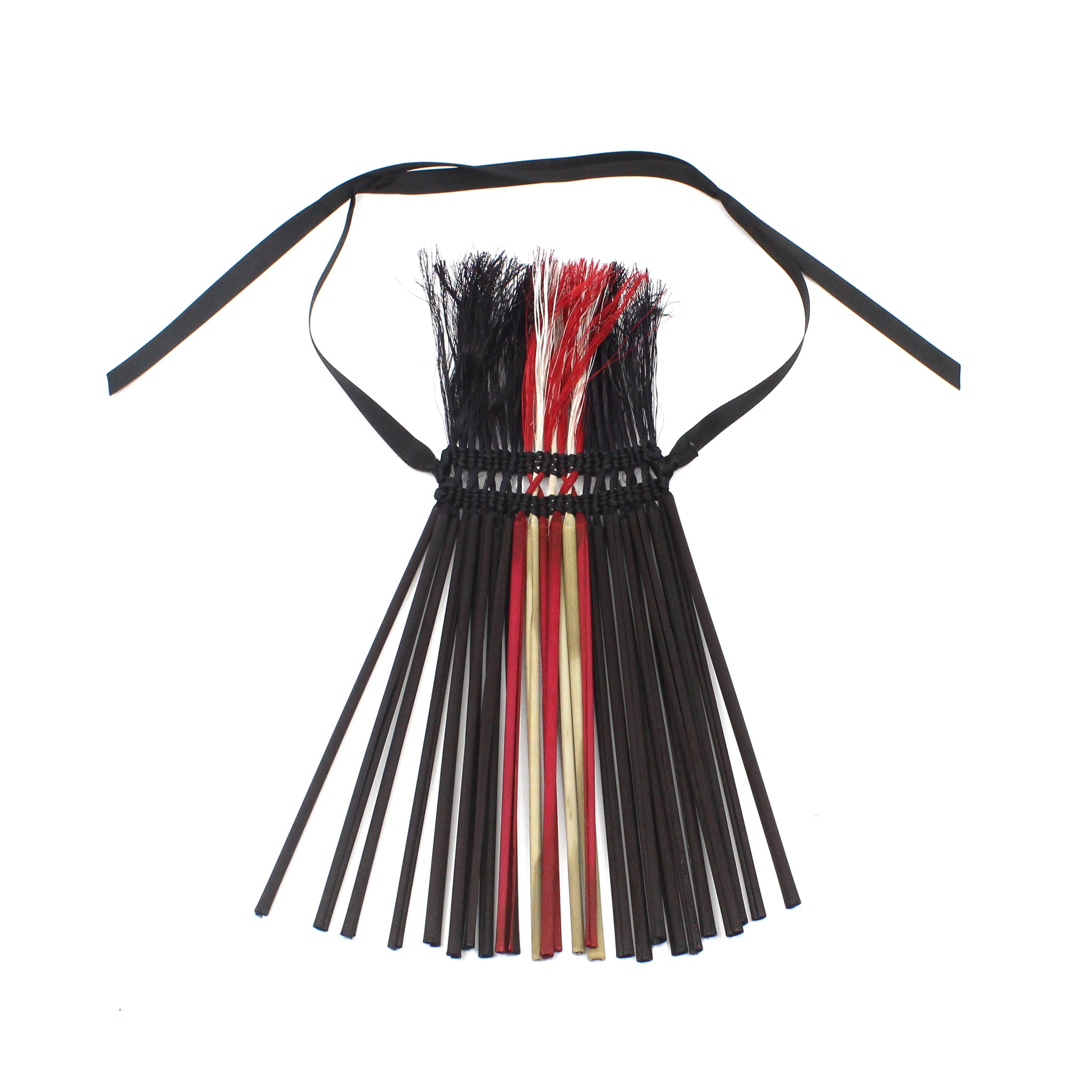 Using whatu (weaving) technique, each Harakeke (flax) and Muka (flax fibre) piupiu strand is woven together to create a stunning, contemporary wearable neckpiece.