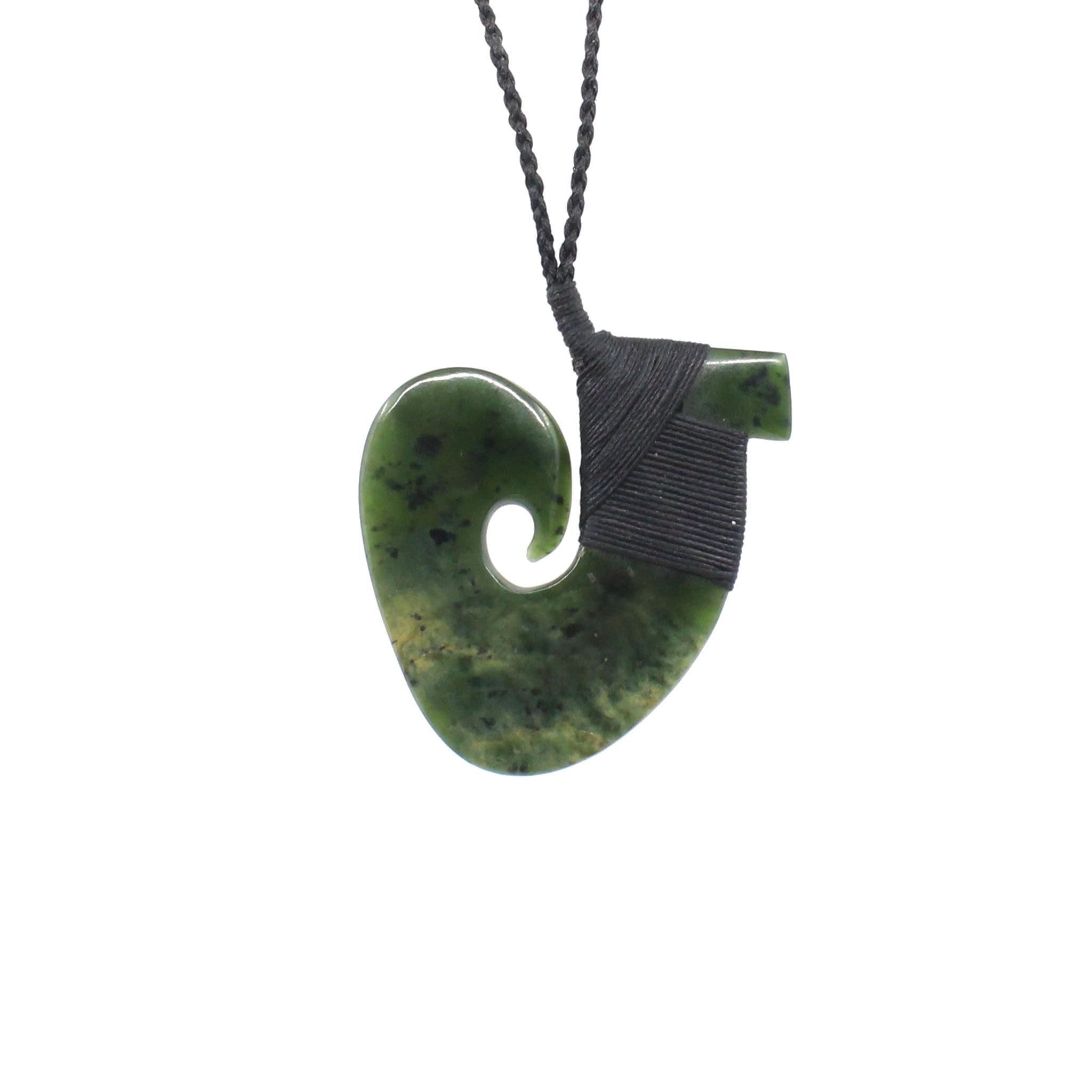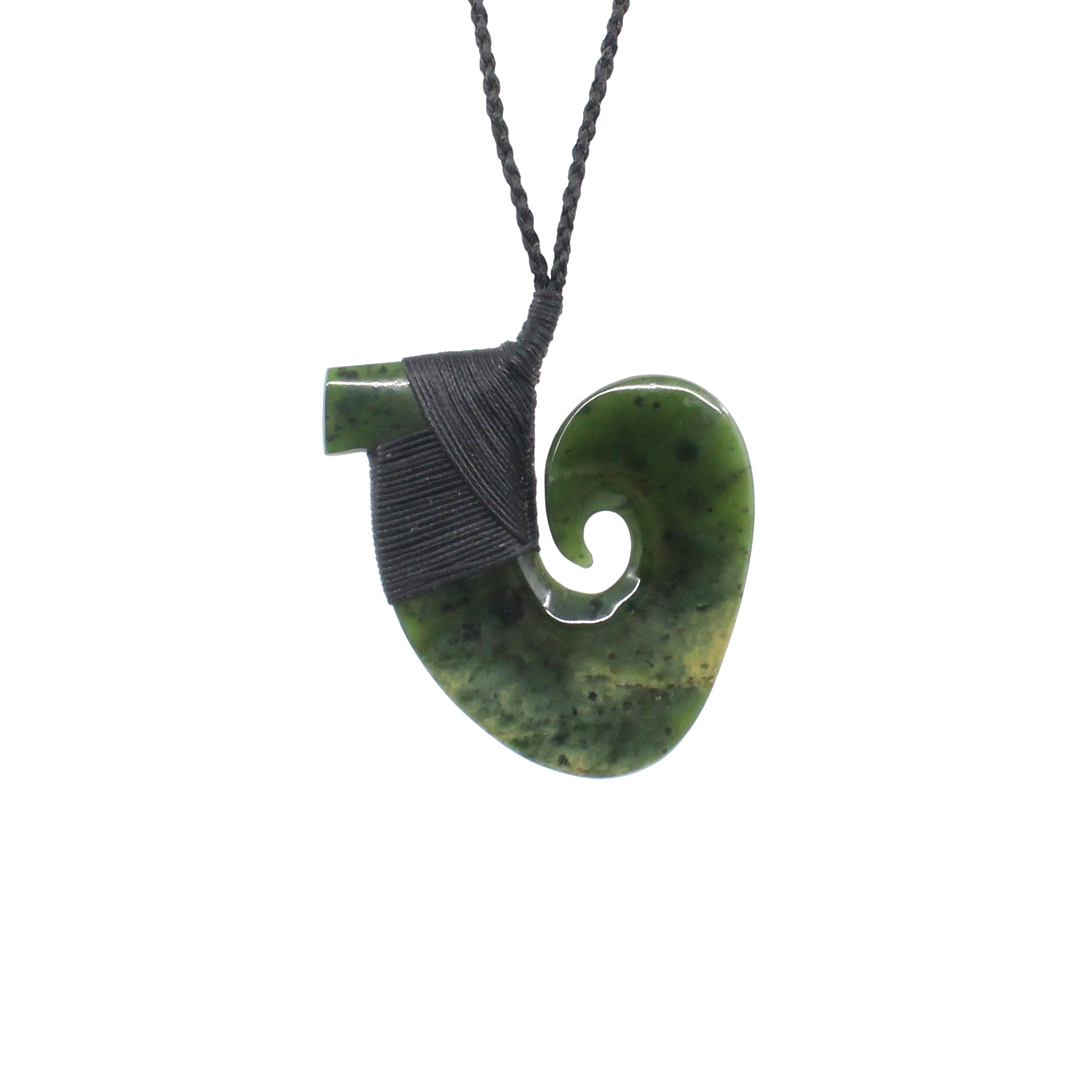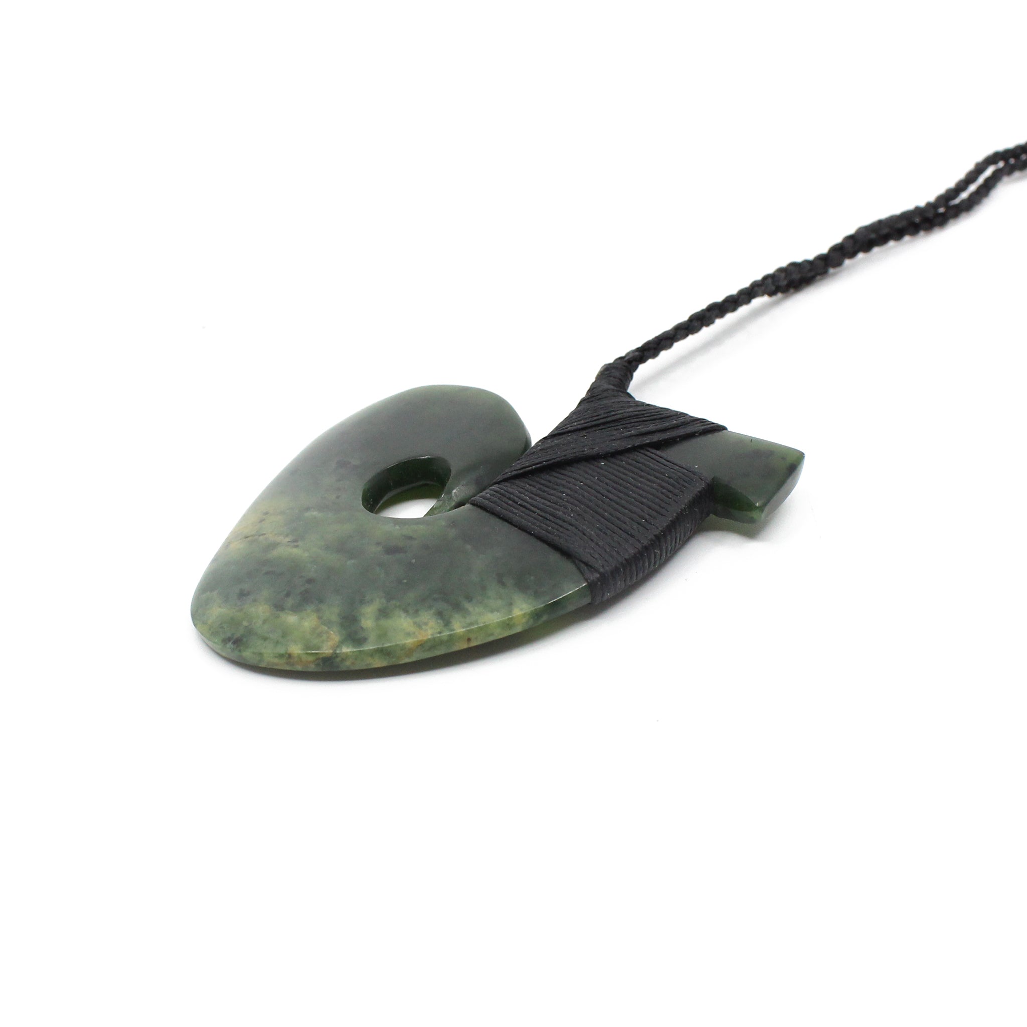 This beautiful Hei Matau pendant has been carved from New Zealand pounamu (greenstone/ jade) by Sands Carving Studio founded by carver Alex Sands- Ngāti Kahungunu o Te Wairoa, English, Scottish and Irish.