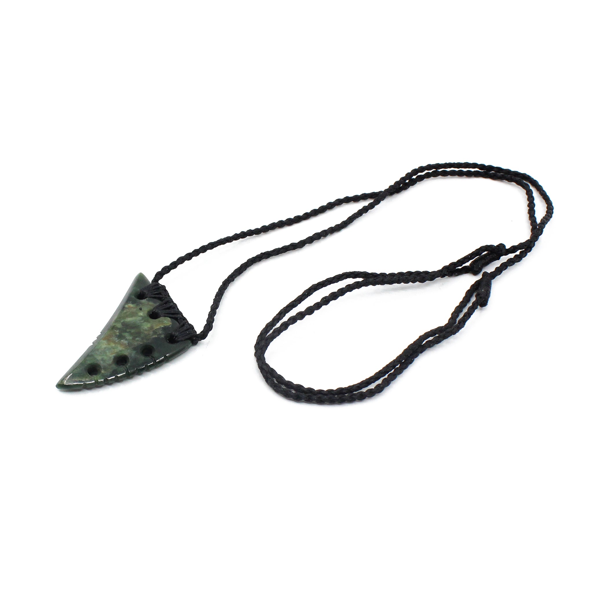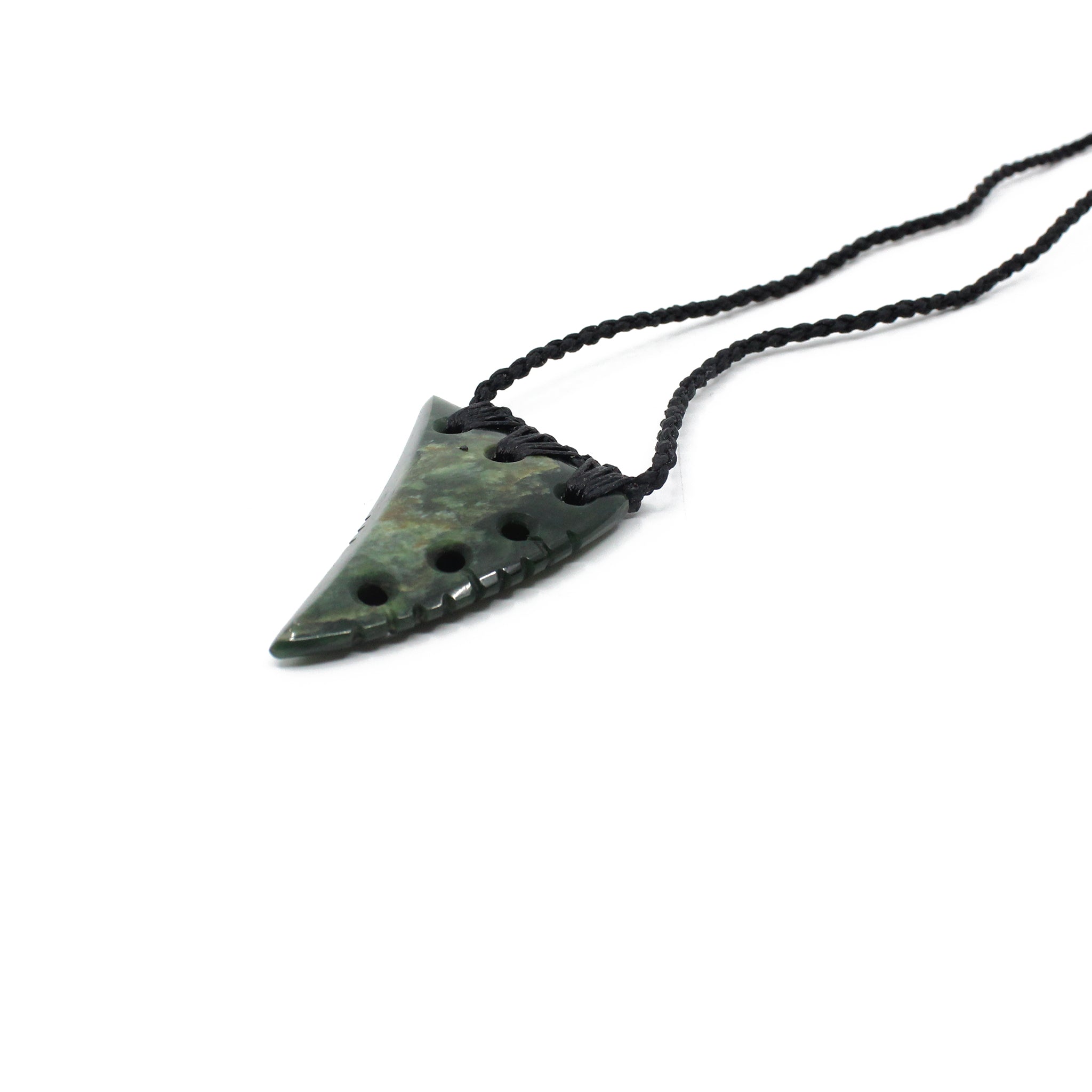 This beautiful Notched Niho (tooth) pendant has been carved from New Zealand pounamu (greenstone/ jade) by the carver from Sands Carving Studio founded by carver Alex Sands- Ngāti Kahungunu o Te Wairoa, English, Scottish and Irish.