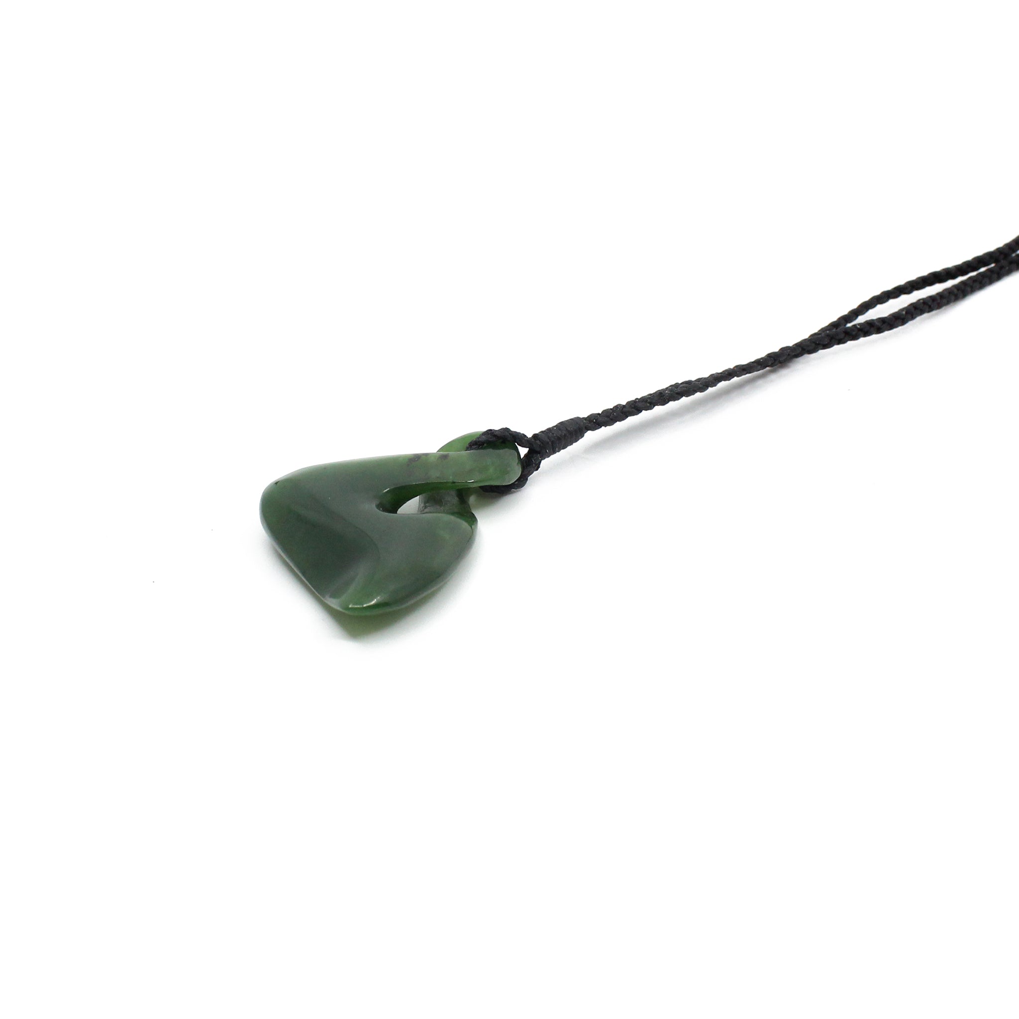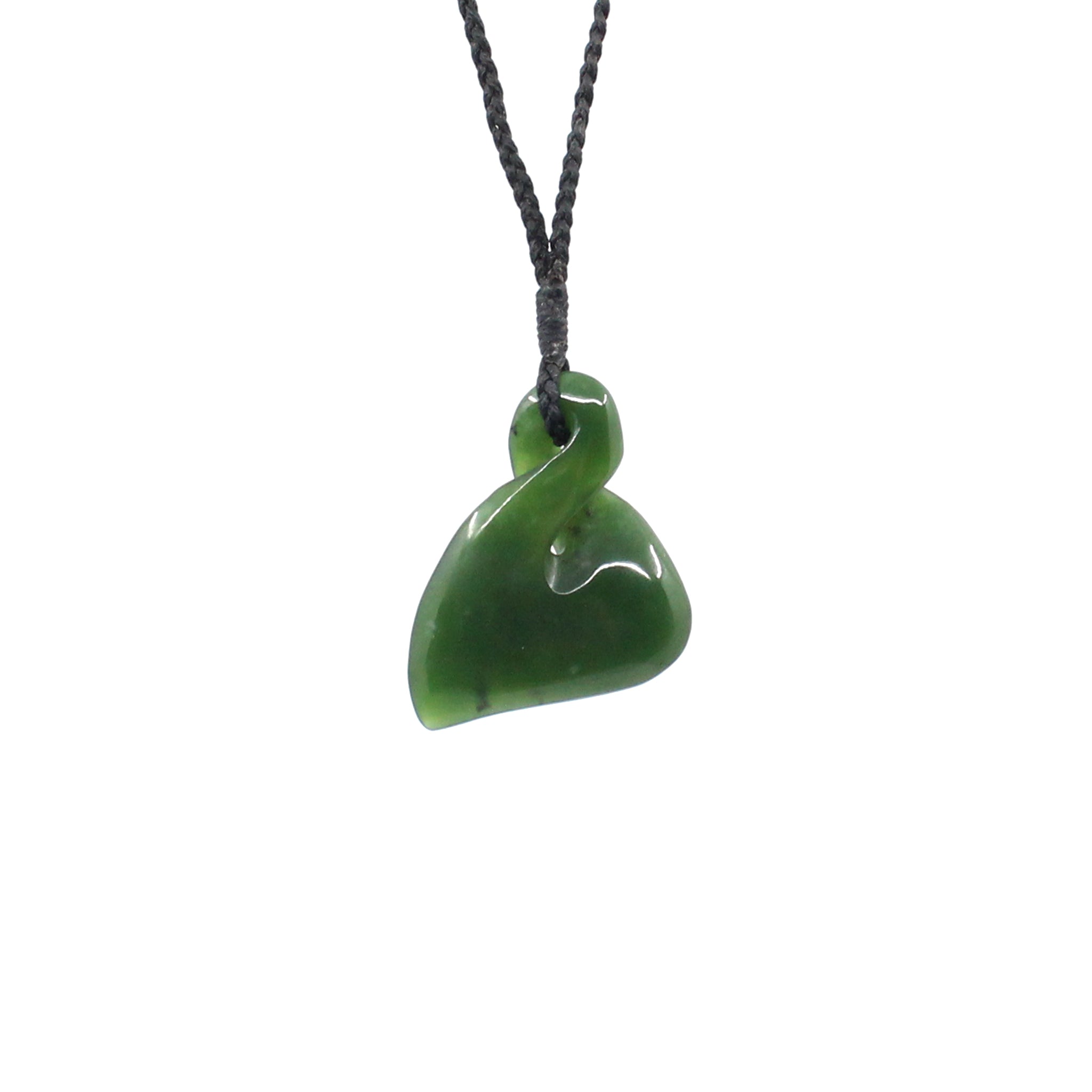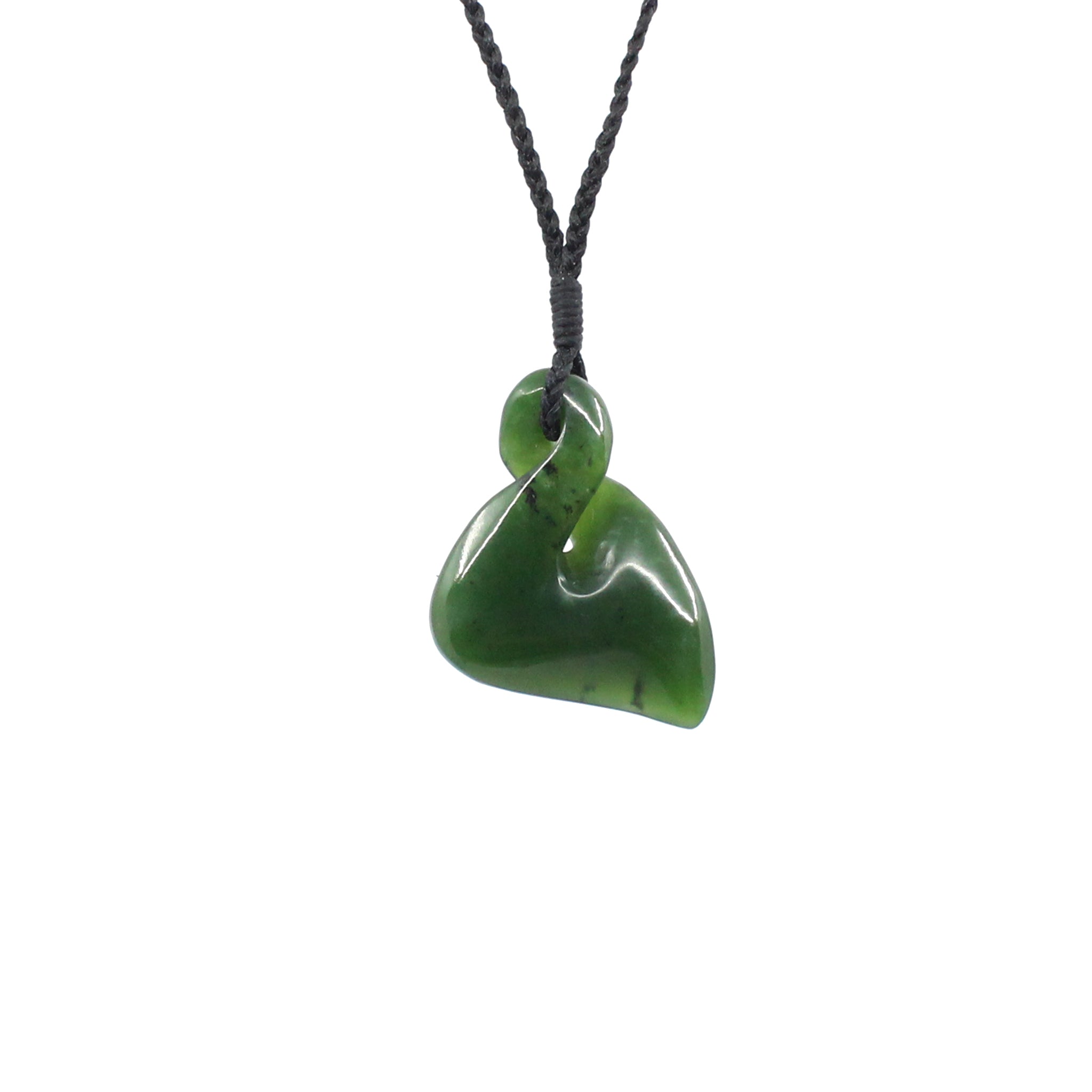 This beautiful Single Twist pendant has been carved from New Zealand pounamu (greenstone/ jade) by Sands Carving Studio founded by carver Alex Sands- Ngāti Kahungunu o Te Wairoa, English, Scottish and Irish.