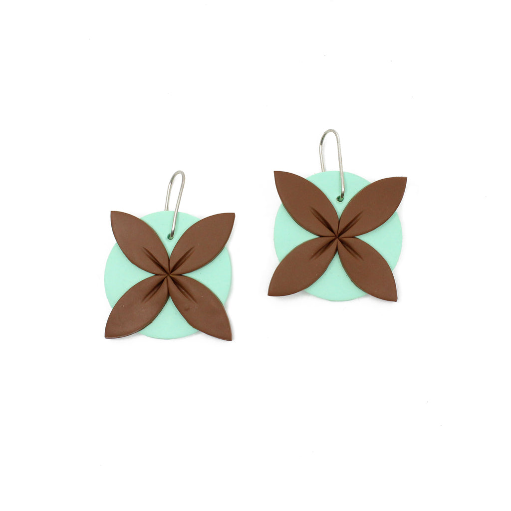 Tipani Statement Earrings Brown & Mint | by Leone Samu Tui