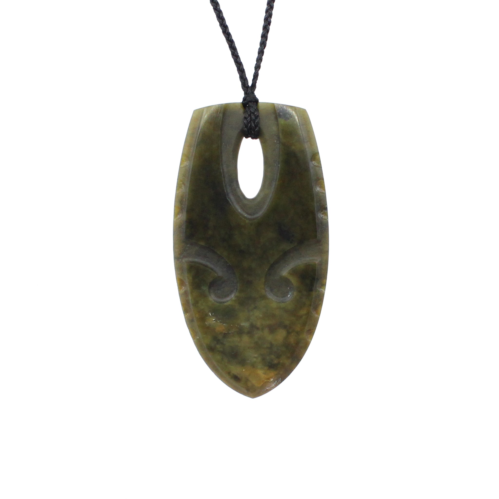 This beautiful Niho (tooth) Pendant has been carved from New Zealand Flower Jade by Kerry Thompson - Ngāti Paoa.