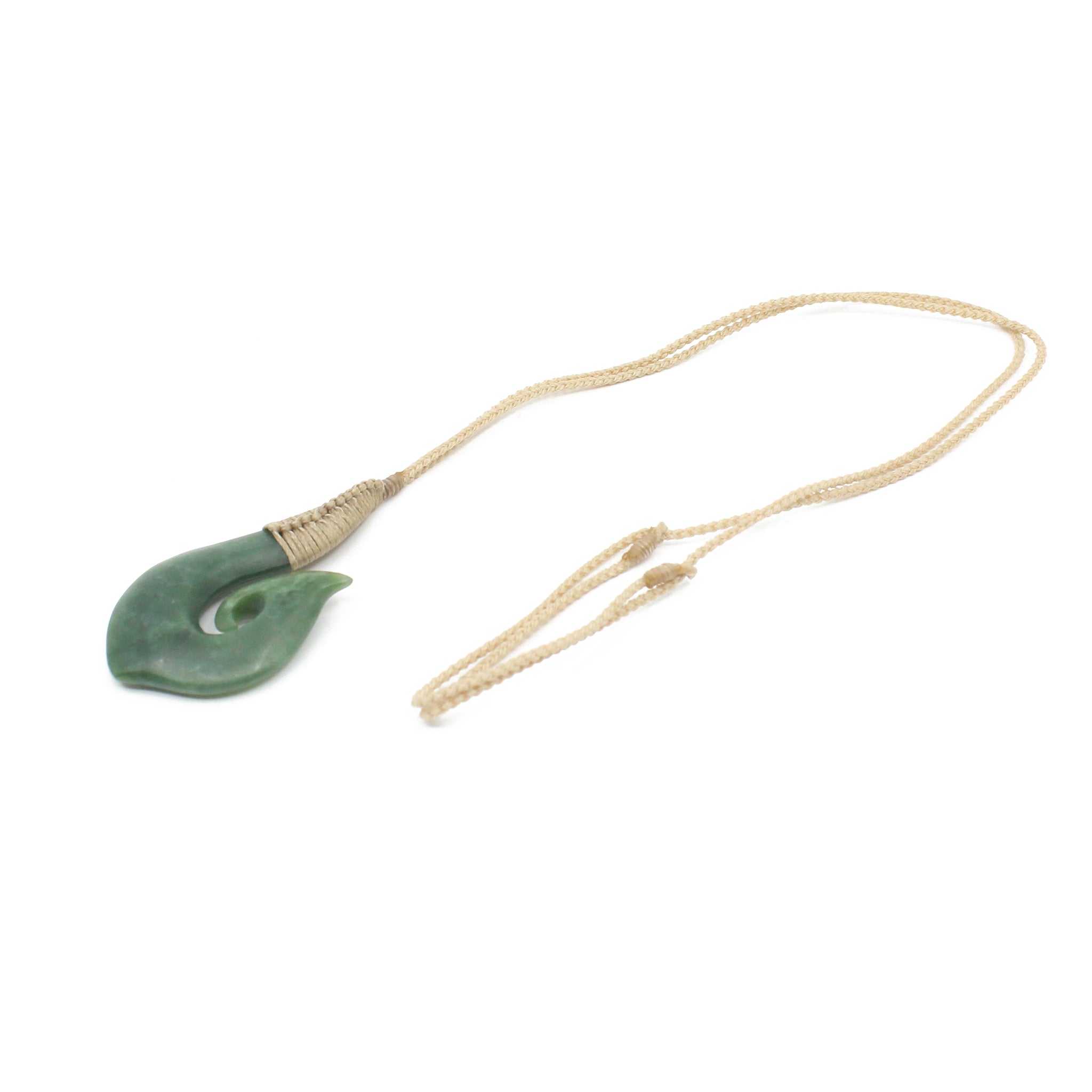 This beautiful Hei Matau pendant has been hand carved from New Zealand pounamu (greenstone/jade) by carver Ric Moor. The Matau is the Māori name for fishhook, and is a symbol of determination, strength, provision, and safe travel over water.