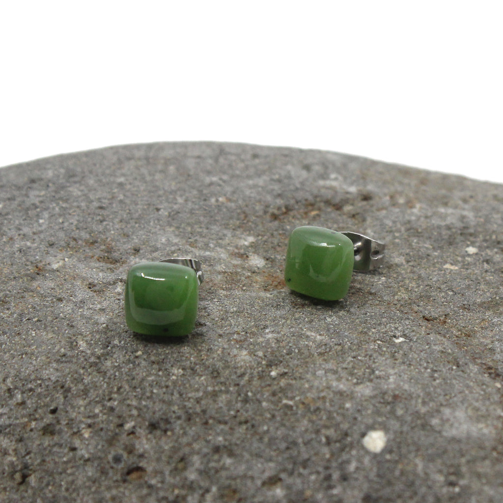 Poutama Earrings Small - Green Clear | by Nichola Te Kiri