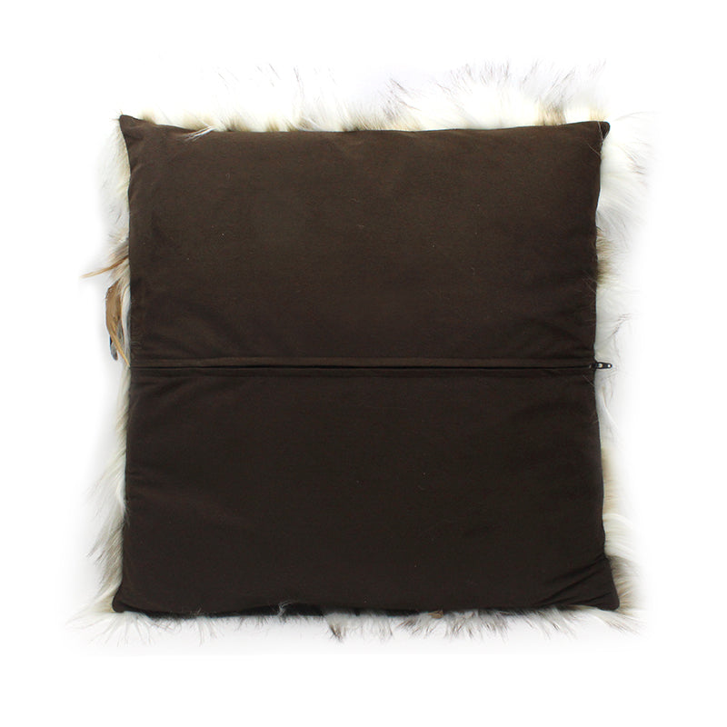 Cushion Cover Hukapapa (White & Brown) with Rooster Feather