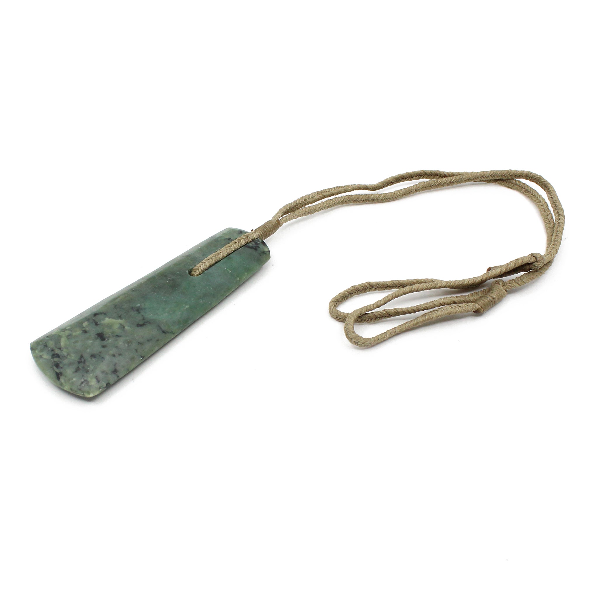 This beautiful Toki pendant has been hand carved from New Zealand pounamu (greenstone/jade) by carver Karaitiana Akroyd - Ngāti Porou, Rongowhakaata, Te-Aitanga-a-Māhaki, Tūhoe.